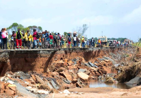 Le cyclone Idai a endommagé une section de la route à Nhamatanda, à environ 50 kilomètres de Beira, au Mozambique, le vendredi 22 mars 2019. Tsvangirayi Mukwazhi / AP...