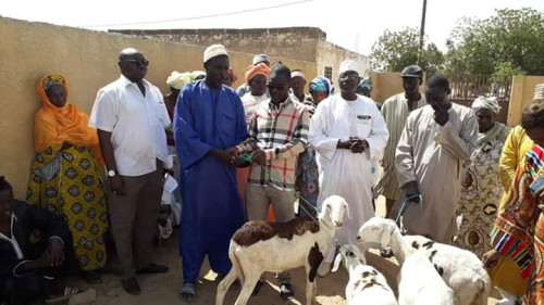En effet dans son programme sociale qui est d'assister continuellement sa population ,les demunis en priorité, la mairie en collaboration avec la cellule de lutte contre la mal nutrition ont distribué aujourd'hui 75 sujets ( 43 moutons dont 3 béliers de race ladoum et 30 chèvres dont 2 bouc de race) aux familles nécessiteux de la commune. Une action très appréciée par les populations et les bénéficiaires venus assister à la cérémonie présidée par l'adjoint au maire Mame Samba Touré assisté par l'ensemble de l'équipe municipale, pour clore cette journée riche en émotion des prières ont été formulées à l'encontre de la lionne du saloum et de toute son équipe.
