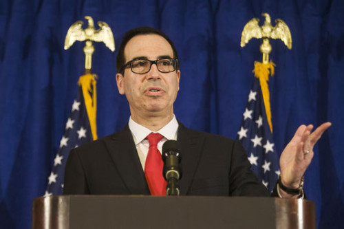 Selon Steven Mnuchin, Wall Street, qui frôle des sommets, pourrait s’effondrer si le Congrès n’adopte pas les baisses d’impôts voulues par Donald Trump.